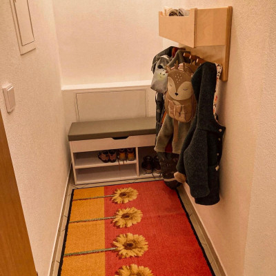 Die Wohnung besteht aus drei liebevoll und kindgerecht eingerichteten Zimmern. Beim Ankommen können die Kinder ihre Jacken an die im Eingangsbereich angelegte Garderobe hängen und ihre Schuhe in ihr Schuhfach stellen.